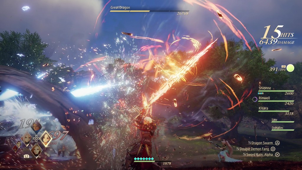 For me the biggest draw and highlight of this game is most definitely the combat. It’s hella fun. Its super fluid and flows perfectly and as you buy the character specific skills and unlock new Artes, or forge new powerful weapons it only gets better. Fighting is super simple as well, attack with R1, dodge with R2, and use X,square and triangle to unleash your Artes, with the aid of artefacts you can add extra sets being triggered by L2. Over time the boost gauge fills allowing you to call in your pals with the corresponding D-pad button, to deal high damage via a very nicely animated attack sequence. In this party based RPG, where the main combat you only have 4 out of 6 members active at any time, I found for once no matter who you controlled directly or you had out with you, you were never at a disadvantage making each party member worthwhile as well as engaging. As more often then not you can easily have 1 or 2 characters you’d forget exist and leave all the shit equipment and items on them to not waste the effort on your main.