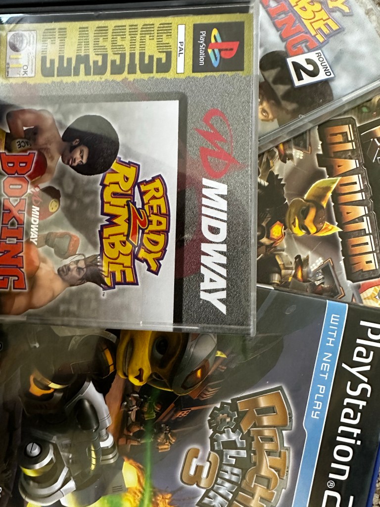 Naturally the two Ready 2 Rumble games I ordered from eBay turned up smashed to fuck. As that’s ultimately what we all look for in a game when you buy from a randomer on the internet. The two Ratchet and Clank games are because they just rule and I have every intention of going through Gladiator very soon.