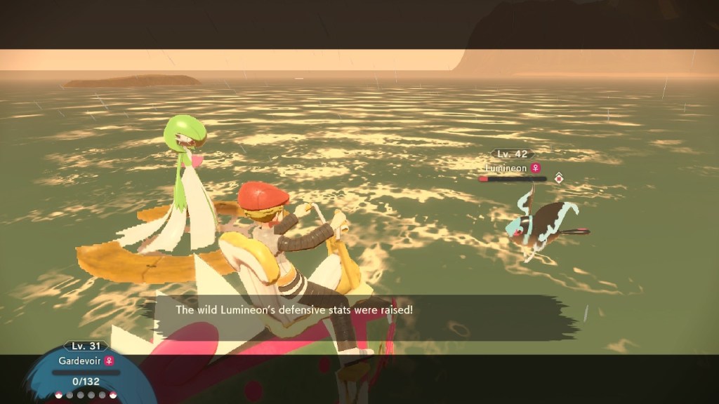 With all the different areas, obviously comes with a variety of Pokemon that are freely wondering the plains, and this can change on day or night allowing for some time sensitive catches. Which can be aided in the different type of pokeball you use/craft. Having to sneak up on them, lure them in with berries, use heavy or lighter balls. And the piece de resistance, you have full control and the throwing of the Pokeball to catch and summon forth your own party. It’s a small addition but it really adds to the aesthetic of the entire franchise and immersion of the game. It’s kinda mental how many iterations of the series it’s taken to get to this point. This on land is a lot of fun. However on the open waters, that is some bullshit right there trying to catch a water type. It’s doable but highly annoying.