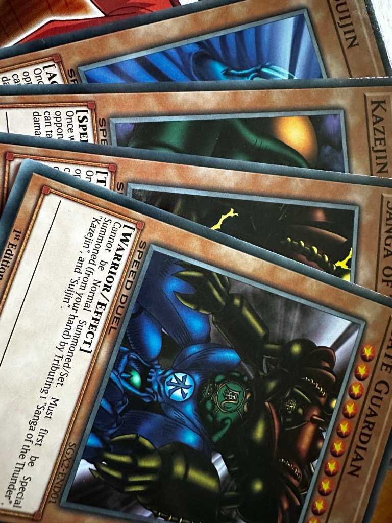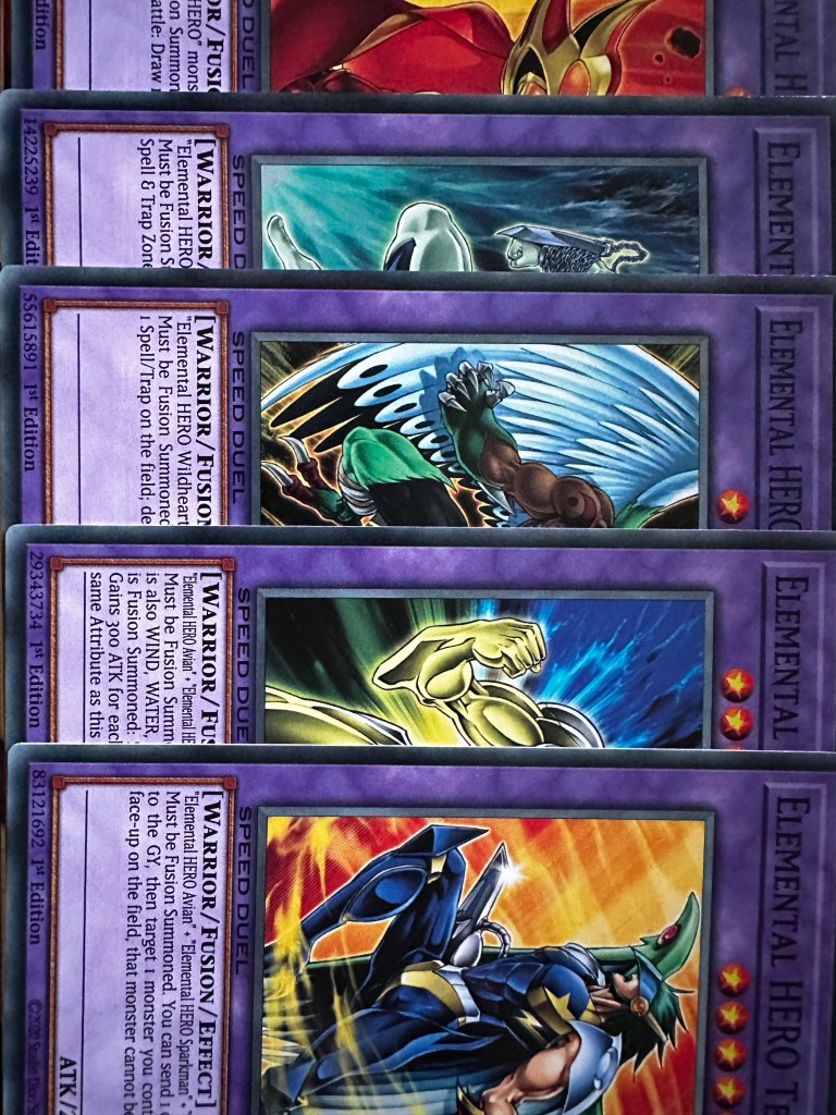 Even though the rules slightly differ, small decks, less life points, skill cards etc. Primarily usd for fast duels hence the name, who’d have thunk. I’m not even sure when the last set or decks for this variation was released, or if more will be released. The ones i’ve got are from 2020. Hoenstly i’m just happy to have some cards that I never got as a kid. I’m especially thrilled at having the Gate guardian and three monsters for summoning this card. Suijin, Sanga and Kazejin. Honestly it gives me slight tingles. You can take that statement as you will. I’m also all for the never ending amount of elemental hero cards and the various fusion monsters as well.