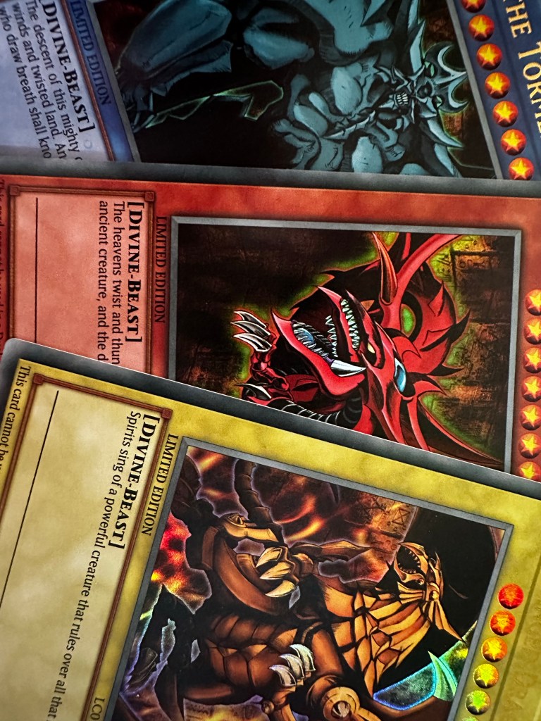 I’ve now officially managed to get two full sets of the Egyptian God cards. I’m truly next level with my level of collecting I tell ya. Plus another of Obelisk and Slifer. I image by todays standards of cards they aren’t what they were once supposed to be or even good. If they aren’t banned competitively. But boy oh boy do I feel a baller for it. Watching the anime as a young’n. They were the coolest shit going and I only ever managed to get a fake obelisk which for many years I treasured as my crowning jewel until I found out the truth.Nearly fucking broke me, truly devastated.