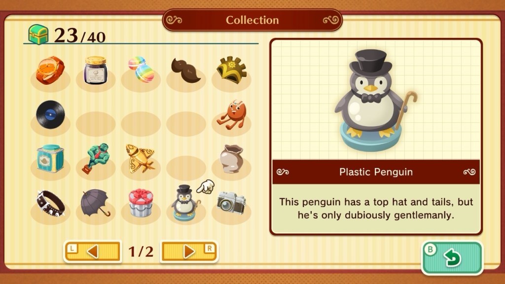 Each puzzle still awards you picarats the higher the amount the harder the puzzle in theory. With the daily puzzles awarding you points to unlock bonus behind the scenes stuff from the entire backlog of the series. You unlock furniture points so you can decorate Layton’s office as you’d like as well, and can even get new outfits for Katrielle and Sherl.