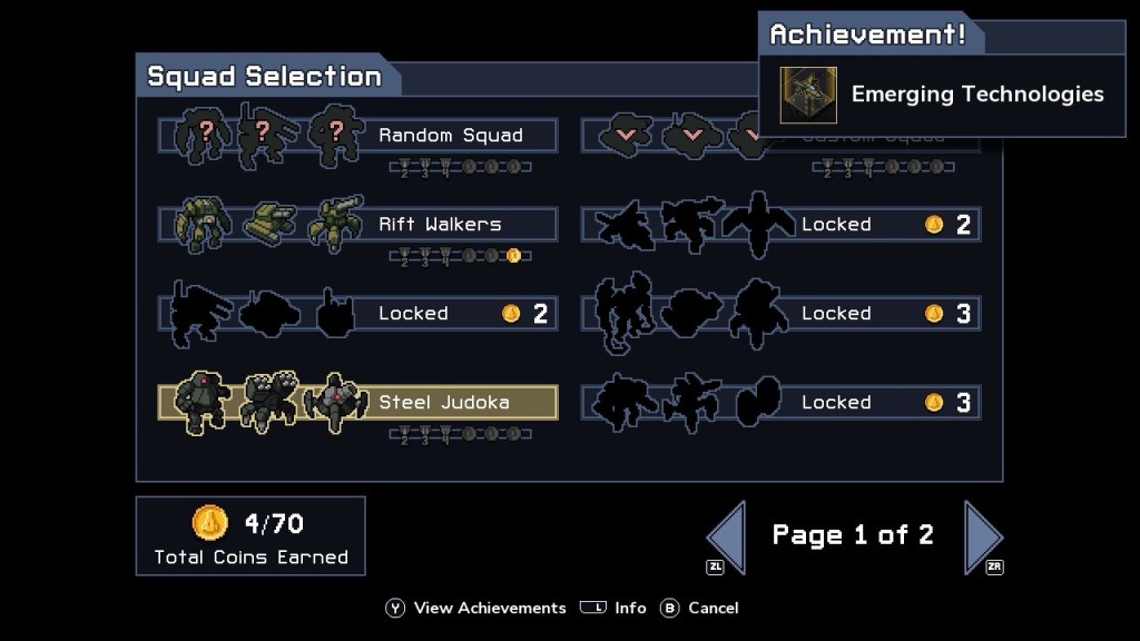 With each run you are awarded coins, to get coins you must reach a milestone or a team specific action. With coins you can purchase new teams to do battle against the Vek with. Along with the standard enemy threat you also have the incoming threat of thunder storms or if you are controlling the terraformer. You can use this to your advantage by punching them into an incoming thunder strike, drowning them in the water or crushing them as grassland becomes desert.