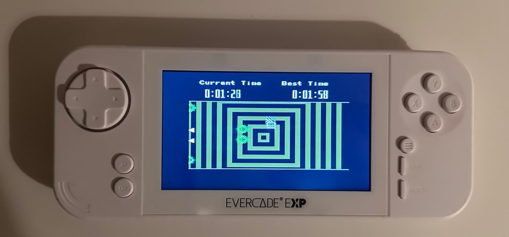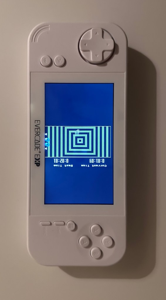 Even though you can buy a more traditional style home console version of the Evercade, something I’m sure I’ll get in the near future, if you wish to still sit in front of your tv you can get yourself a mini HDMI to HDMI cable slap that bad boy straight into the back of your tv. Then, ta-daaah! You’ve got your EXP as a controller and all the marvels of the games that become alive and in technicolour, all in glorious 50 inched 4K.