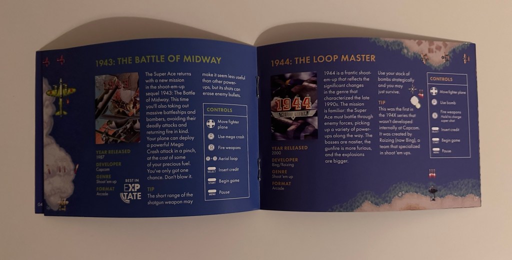 Something small I do enjoy about evercade game boxes are along with the cartridges come these nifty game manuals. Now I think the art of a game manual being included with a game seems to be dying and it’s not particularity a trend I appreciate. These tiny folded laminated joys, come with the games controls and if it’s a fighting game it will even list each characters combos. I just love it. I’m what you’d call a forgetful gamer or just genuinely bad. So, having these to hand make my life just that little bit better.