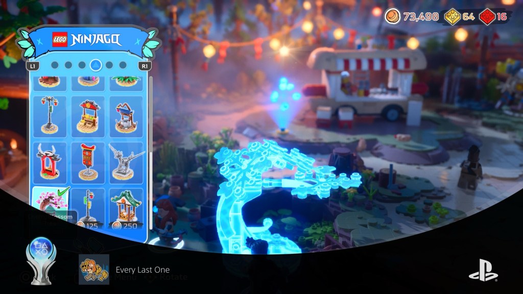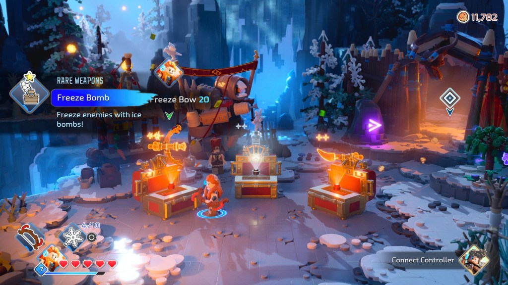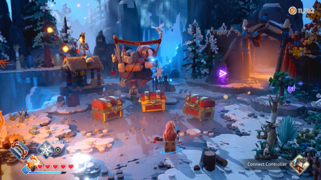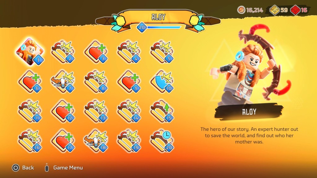 The hub area of the game comes in the form of mothers heart where you use your gold bricks you unlock to build new buildings that mostly do nothing. It looks nice but outside of the costume shop and upgrade area they do nothing. The customisation available is good but with the colour change, different roofs and what you put in the yard of the buildings it just misses the mark for me. Its mostly used to promote other lego series like ninjago or city. There is a distinct lack of horizon specific costumes or building variations available which is such a strange choice to make it’s to reliant on other sources when there is a wealth the could’ve used from the two games.
